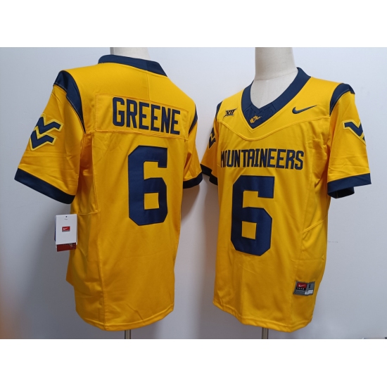 Men's West Virginia Mountaineers #6 Garrett Greene Yellow FUSE College Stitched Jersey
