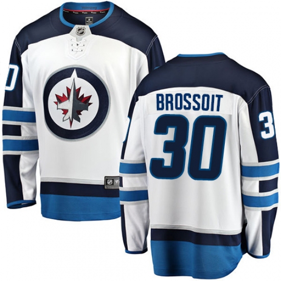 >Men's Winnipeg Jets #30 Laurent Brossoit Fanatics Branded White Away Breakaway NHL Jersey