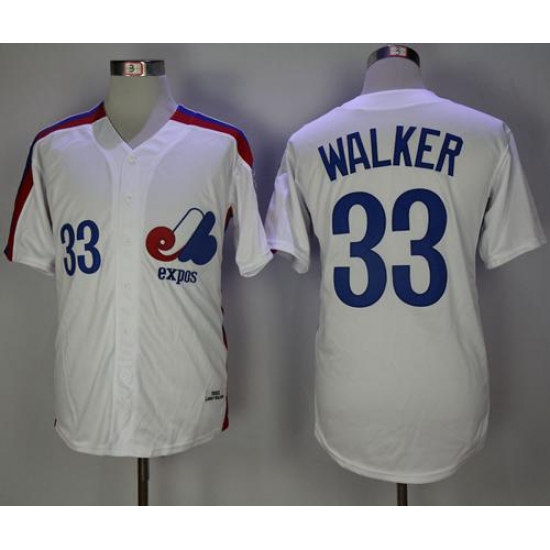 >Mitchell And Ness Montreal Expos #33 Larry Walker White Throwback Stitched MLB Jersey