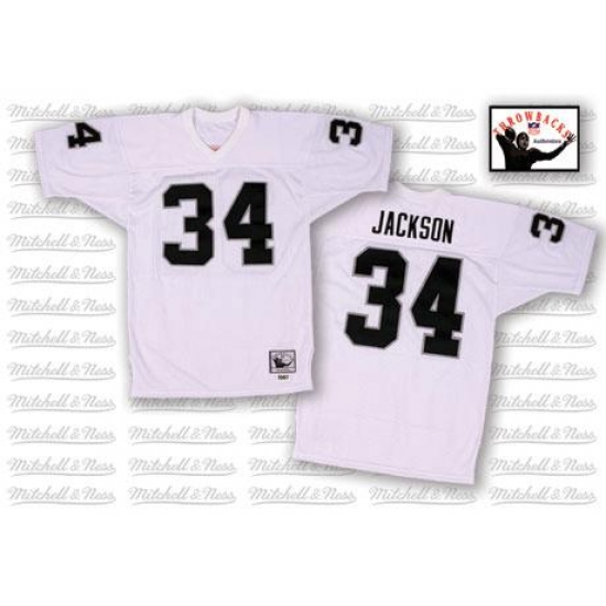 Feel like part of your favorite team by wearing this NFL® Mitchell and Ness Oakland Raiders #34 Bo Jackson White Authentic NFL Throwback Jersey, made of thick, high-quality Pro-Brite fabric for a genuine gridiron look. The players number which 100% stitched is displayed in tackle twill on the chest, back and sleeves, along with the team name on the front. The players name which 100% stitched is displayed on a sewn-down nameplate at the back. 100% Pro-Brite nylon and 100% Pro-Brite polyester for body, 100% lycratalic spandex dazzle for Side Panels/Collar/Cuffs, NFL® Equipment patch sewn on the bottom of the front collar or fabric insert, NFL® Equipment jock tag with numeric sizing is applied to the lower left bottom of the jersey, Officially licensed