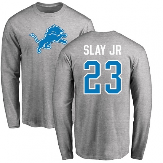 >NFL Nike Detroit Lions #23 Darius Slay Jr Ash Name & Number Logo Long Sleeve T-Shirt