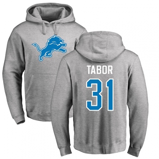 >NFL Nike Detroit Lions #31 Teez Tabor Ash Name & Number Logo Pullover Hoodie