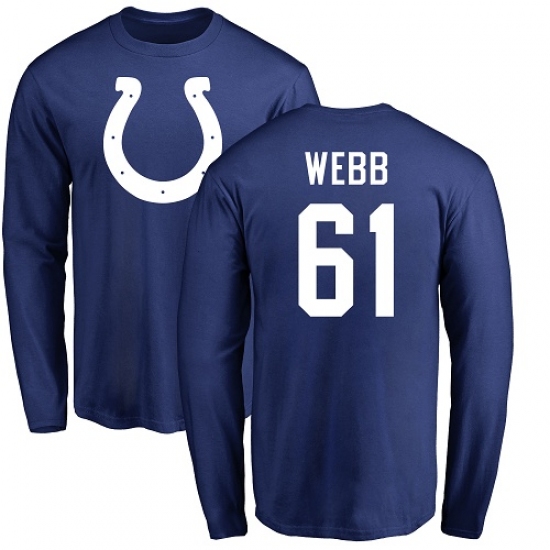 >NFL Nike Indianapolis Colts #61 JMarcus Webb Royal Blue Name & Number Logo Long Sleeve T-Shirt