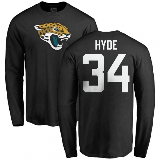 >NFL Nike Jacksonville Jaguars #34 Carlos Hyde Black Name & Number Logo Long Sleeve T-Shirt