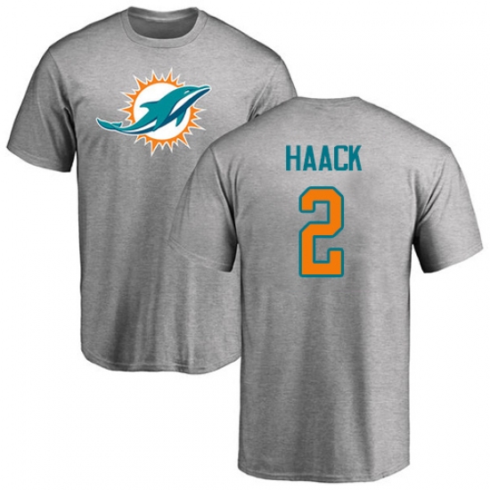 NFL Nike Miami Dolphins #2 Matt Haack Ash Name & Number Logo T-Shirt