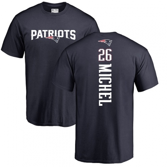 >NFL Nike New England Patriots #26 Sony Michel Navy Blue Backer T-Shirt