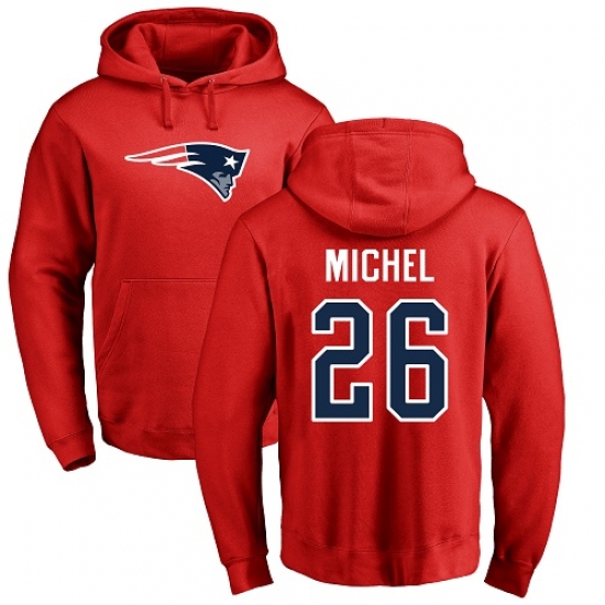 NFL Nike New England Patriots #26 Sony Michel Red Name & Number Logo Pullover Hoodie
