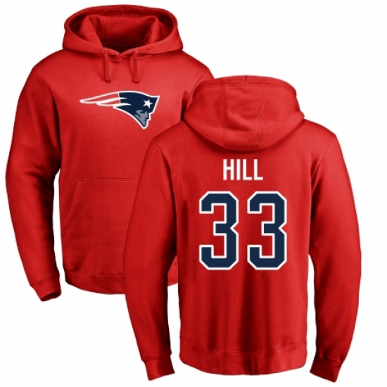 >NFL Nike New England Patriots #33 Jeremy Hill Red Name & Number Logo Pullover Hoodie