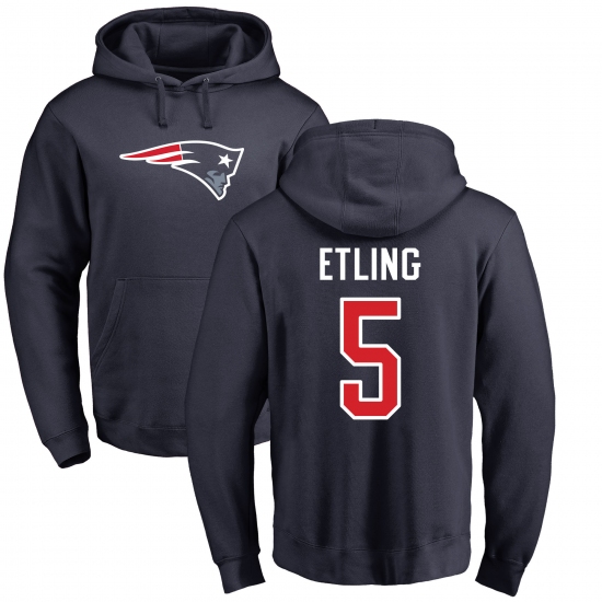>NFL Nike New England Patriots #5 Danny Etling Navy Blue Name & Number Logo Pullover Hoodie