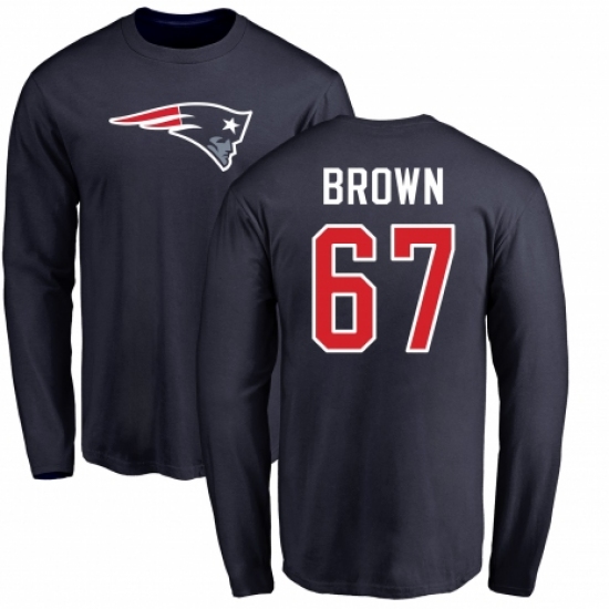 >NFL Nike New England Patriots #67 Trent Brown Navy Blue Name & Number Logo Long Sleeve T-Shirt