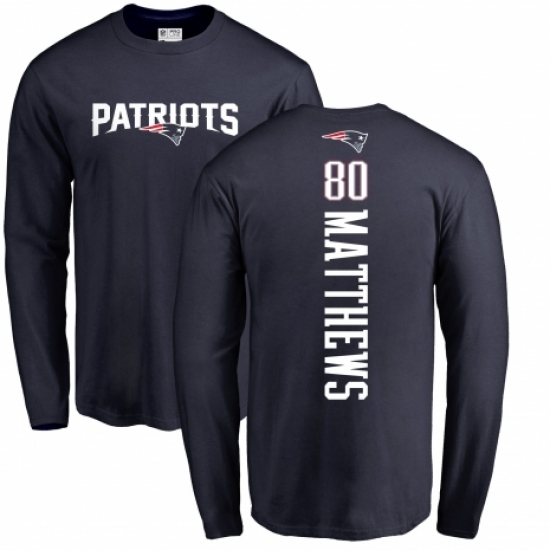 >NFL Nike New England Patriots #80 Jordan Matthews Navy Blue Backer Long Sleeve T-Shirt