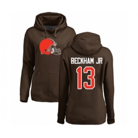 NFL Women's Nike Cleveland Browns #13 Odell Beckham Jr. Brown Name & Number Logo Pullover Hoodie