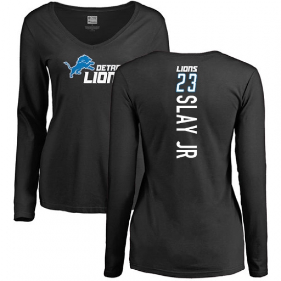NFL Women's Nike Detroit Lions #23 Darius Slay Jr Black Backer Long Sleeve T-Shirt