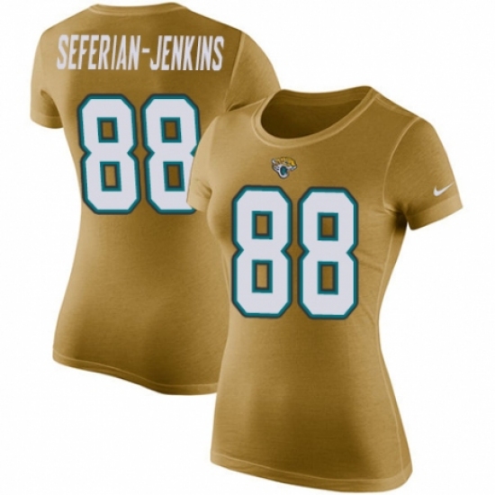 >NFL Women's Nike Jacksonville Jaguars #88 Austin Seferian-Jenkins Gold Rush Pride Name & Number T-Shirt