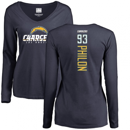 >NFL Women's Nike Los Angeles Chargers #93 Darius Philon Navy Blue Backer Long Sleeve T-Shirt