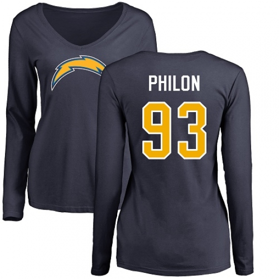 NFL Women's Nike Los Angeles Chargers #93 Darius Philon Navy Blue Name & Number Logo Long Sleeve T-Shirt
