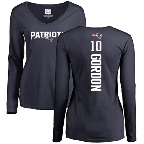 NFL Women's Nike New England Patriots #10 Josh Gordon Navy Blue Backer Slim Fit Long Sleeve T-Shirt