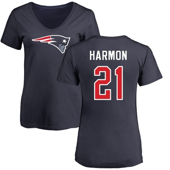 >NFL Women's Nike New England Patriots #21 Duron Harmon Navy Blue Name & Number Logo Slim Fit T-Shirt