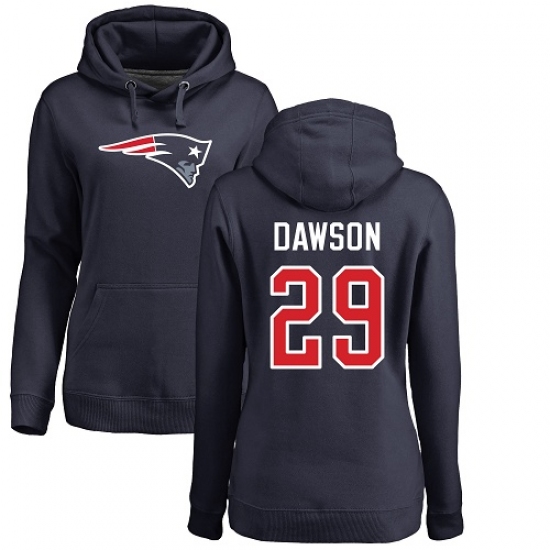 >NFL Women's Nike New England Patriots #29 Duke Dawson Navy Blue Name & Number Logo Pullover Hoodie