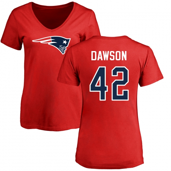 >NFL Women's Nike New England Patriots #42 Duke Dawson Red Name & Number Logo Slim Fit T-Shirt