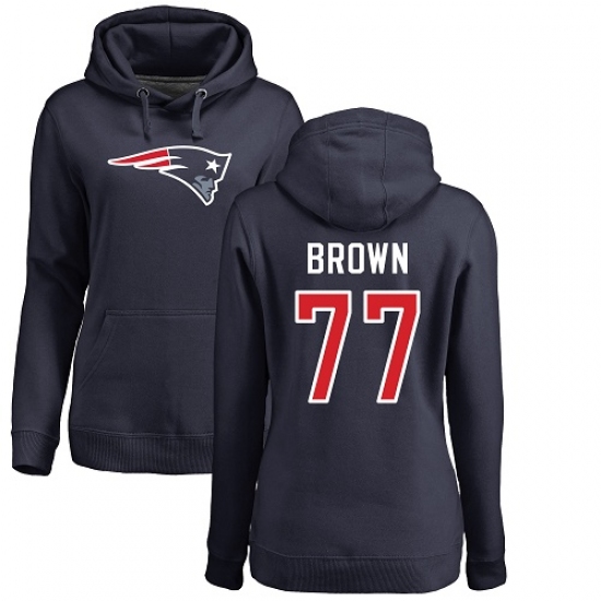 NFL Women's Nike New England Patriots #77 Trent Brown Navy Blue Name & Number Logo Pullover Hoodie