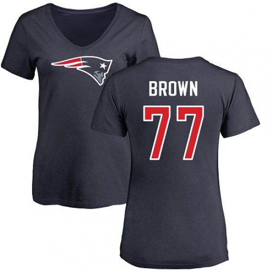 >NFL Women's Nike New England Patriots #77 Trent Brown Navy Blue Name & Number Logo Slim Fit T-Shirt