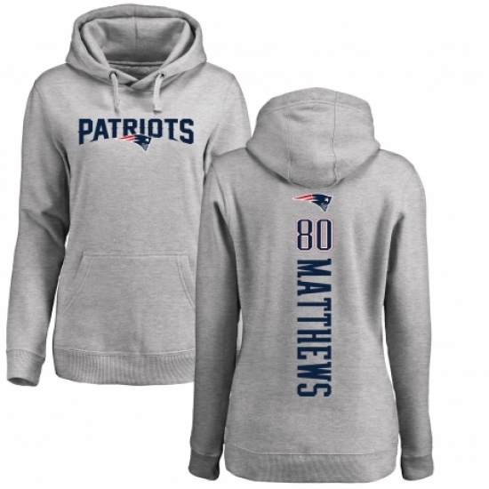 >NFL Women's Nike New England Patriots #80 Jordan Matthews Ash Backer Pullover Hoodie