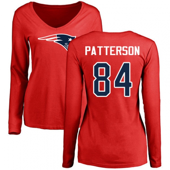 NFL Women's Nike New England Patriots #84 Cordarrelle Patterson Red Name & Number Logo Slim Fit Long Sleeve T-Shirt
