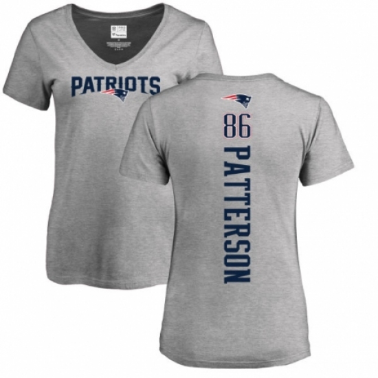 NFL Women's Nike New England Patriots #86 Cordarrelle Patterson Ash Backer V-Neck T-Shirt