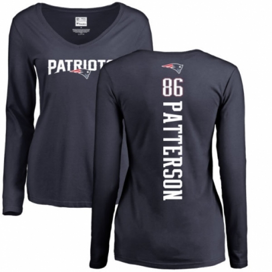>NFL Women's Nike New England Patriots #86 Cordarrelle Patterson Navy Blue Backer Slim Fit Long Sleeve T-Shirt