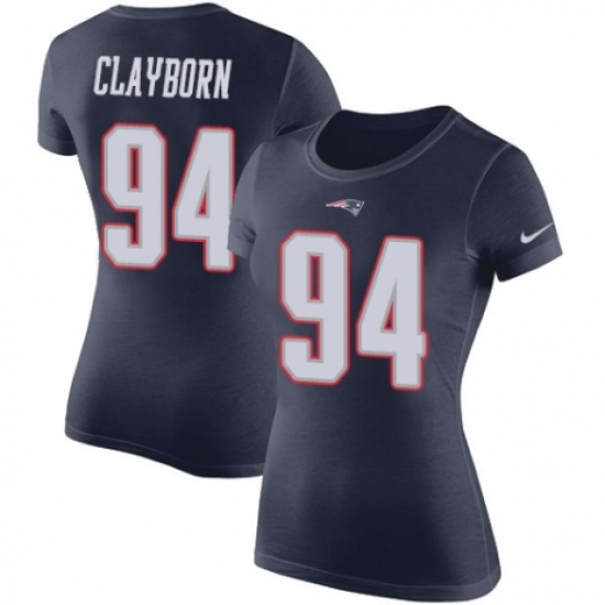 >NFL Women's Nike New England Patriots #94 Adrian Clayborn Navy Blue Rush Pride Name & Number T-Shirt