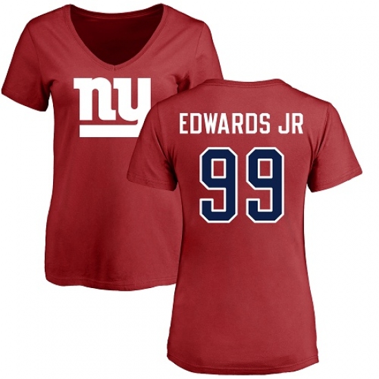 NFL Women's Nike New York Giants #99 Mario Edwards Jr Red Name & Number Logo T-Shirt