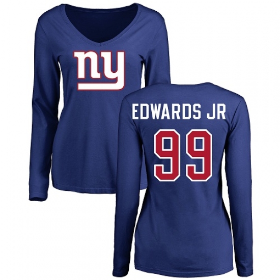 >NFL Women's Nike New York Giants #99 Mario Edwards Jr Royal Blue Name & Number Logo Long Sleeve T-Shirt