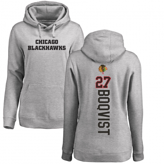 >NHL Women's Adidas Chicago Blackhawks #27 Adam Boqvist Ash Backer Pullover Hoodie