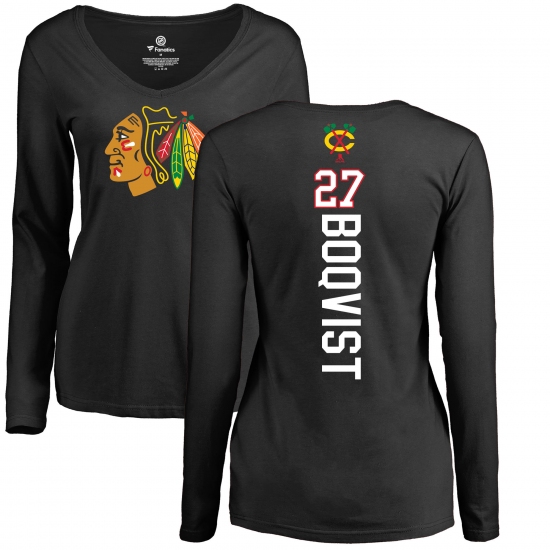 >NHL Women's Adidas Chicago Blackhawks #27 Adam Boqvist Black Backer Long Sleeve T-Shirt