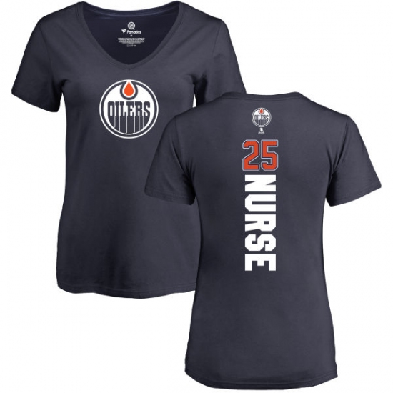 >NHL Women's Adidas Edmonton Oilers #25 Darnell Nurse Navy Blue Backer Slim Fit V-Neck T-Shirt