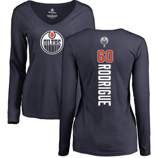 NHL Women's Adidas Edmonton Oilers #60 Olivier Rodrigue Navy Blue Backer Slim Fit Long Sleeve T-Shirt