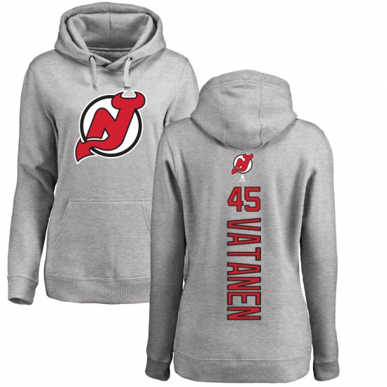 >NHL Women's Adidas New Jersey Devils #45 Sami Vatanen Ash Backer Pullover Hoodie