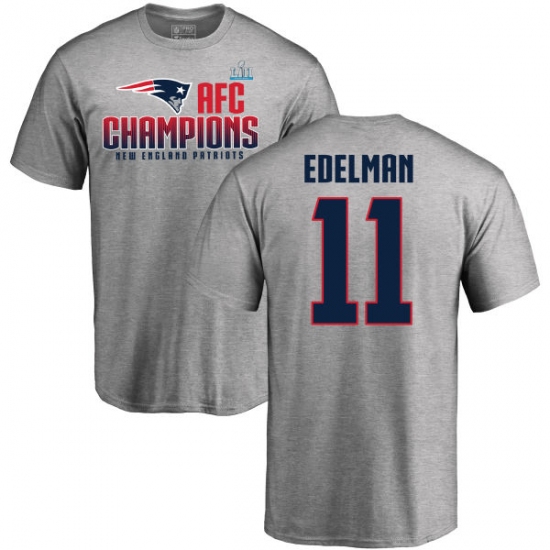 Nike New England Patriots #11 Julian Edelman Heather Gray 2017 AFC Champions V-Neck T-Shirt