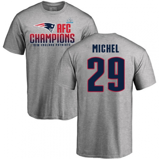 Nike New England Patriots #29 Sony Michel Heather Gray 2017 AFC Champions V-Neck T-Shirt