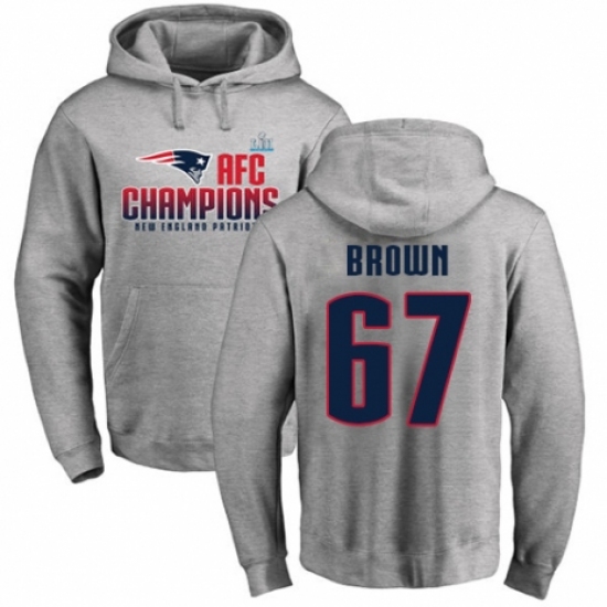 >Nike New England Patriots #67 Trent Brown Heather Gray 2017 AFC Champions Pullover Hoodie