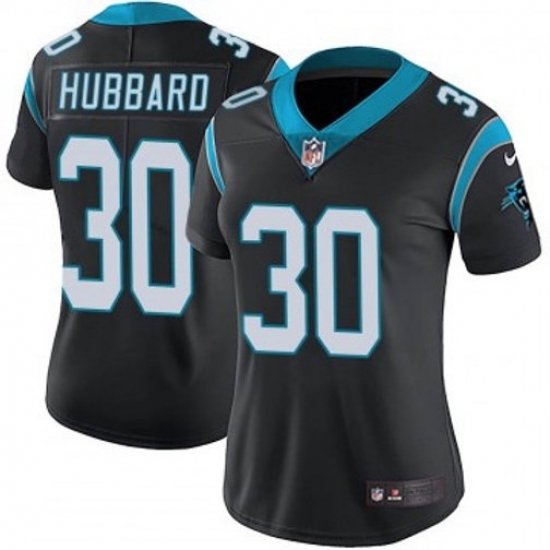 >Women Carolina Panthers #30 Chuba Hubbard Black F U S E Stitched NFL Jersey