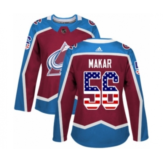 Women's Adidas Colorado Avalanche #56 Cale Makar Authentic Burgundy Red USA Flag Fashion NHL Jersey