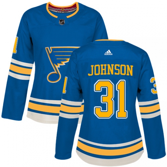 >Women's Adidas St. Louis Blues #31 Chad Johnson Authentic Navy Blue Alternate NHL Jersey