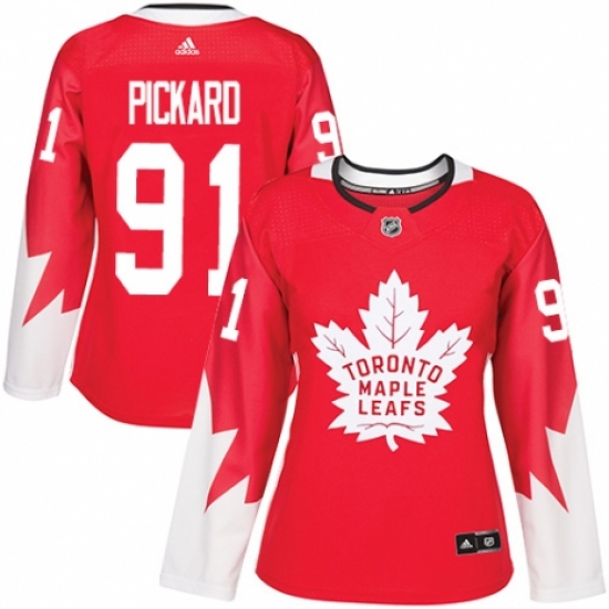 >Women's Adidas Toronto Maple Leafs #91 John Tavares Authentic Red Alternate NHL Jersey