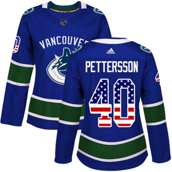 >Women's Adidas Vancouver Canucks #40 Elias Pettersson Blue Home Authentic USA Flag Stitched NHL Jersey
