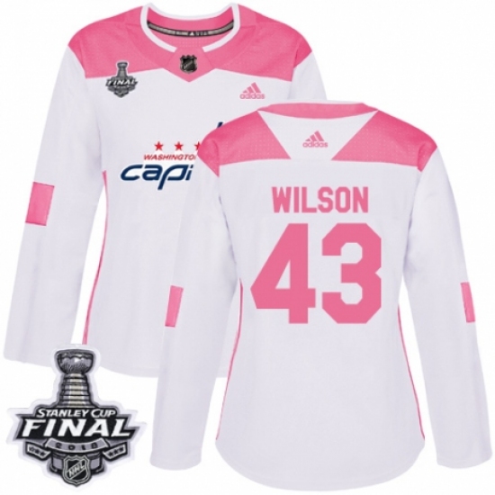 Women's Adidas Washington Capitals #43 Tom Wilson Authentic White/Pink Fashion 2018 Stanley Cup Final NHL Jersey