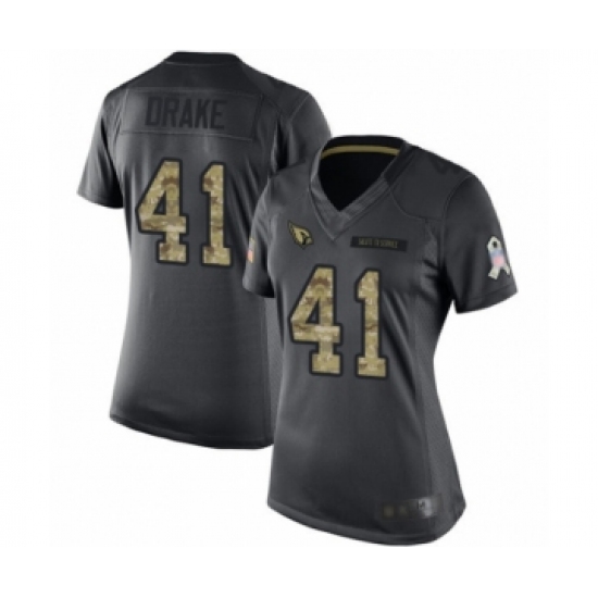 Women's Arizona Cardinals #41 Kenyan Drake Limited Black 2016 Salute to Service Football Jersey