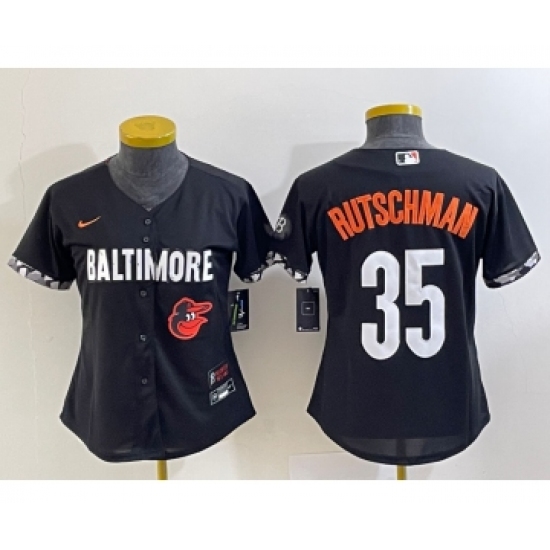 Women's Baltimore Orioles #35 Adley Rutschman Black 2023 City Connect Cool Base Stitched Jersey