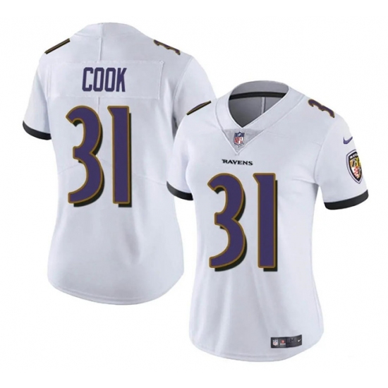 Women's Baltimore Ravens #31 Dalvin Cook White Football Stitched Jersey